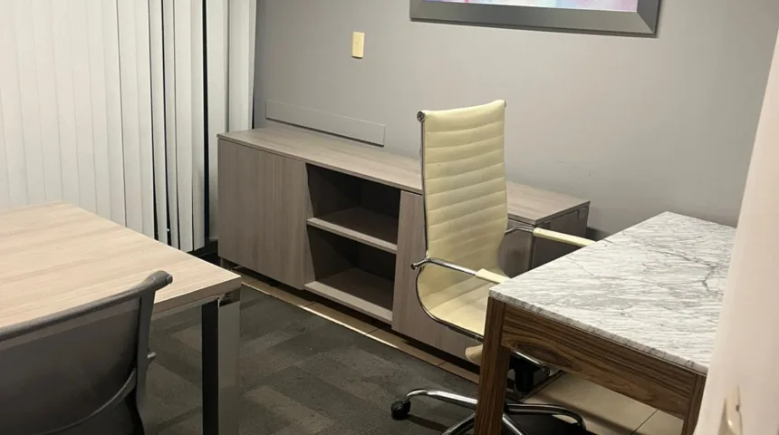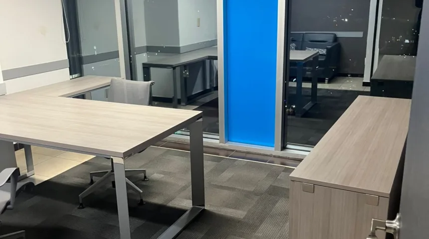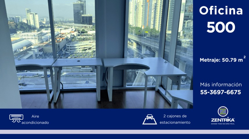 Oficina pequeña a la que se le otorgan dos cajones de estacionamiento que pueden ser utilizados por los usuarios de la oficina (miembros del equipo). Cuenta con instalación de aire acondicionado. y una excelente vista.
