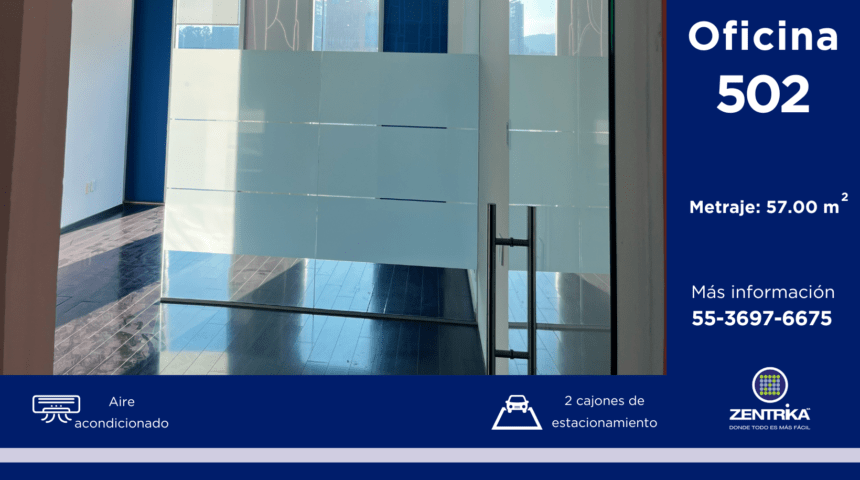 Oficina acondicionada para dos oficinas privadas y espacio para una estación de trabajo. Se otorgan dos cajones de estacionamiento que pueden ser utilizados por los usuarios de la oficina (miembros del equipo). Cuenta con instalación de aire acondicionado y tiene contrato de luz por parte de CFE de manera independiente.